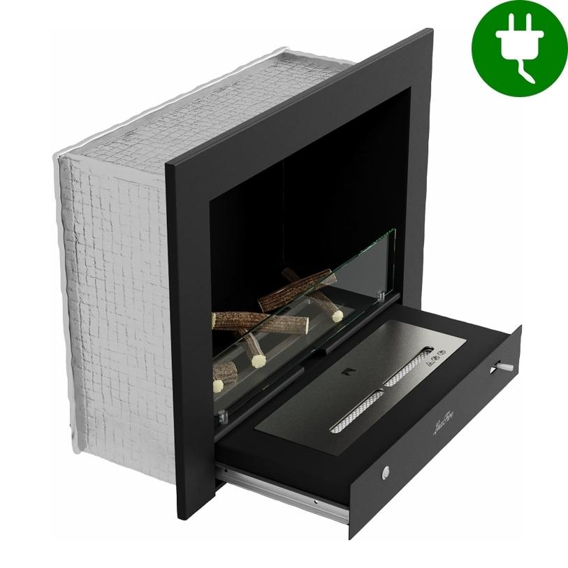 Благодаря теплоизоляции биокамина можно позволить себе более широкий выбор материалов отделки и ниши, но мы бы все равно рекомендовали встраивать биокамин в такие материалы как: бетон, гипсокартон, пеноблоки, кирпич и т.д.