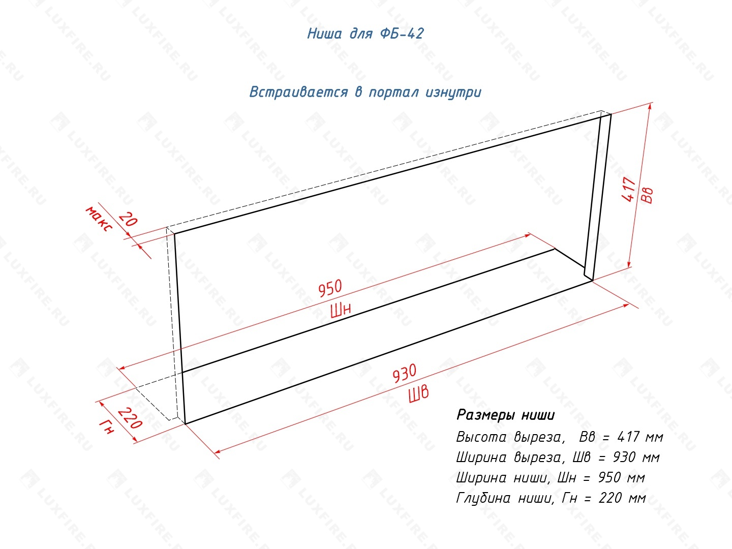 Адаптивен к каминным порталам и аналогам электрокаминов популярных марок.